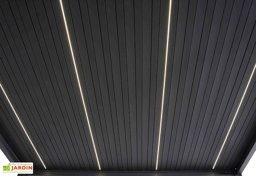 Les lames sont disponibles en deux coloris, à savoir gris anthracite et blanc pour se marier avec les différentes pergolas qui existent.
