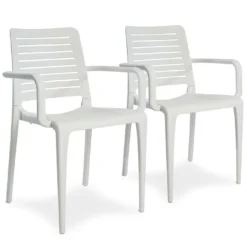 Ces fauteuils d’extérieur sont parfaits pour compléter votre mobilier de jardin. Ils mesurent 56 cm de côté pour 84 cm de haut et sont conçus pour être facilement empilés, ce qui permet d’économiser de l’espace au moment de leur rangement. Chaque siège s’est enfin vu doté de patins antidérapants, pour une stabilité optimale.