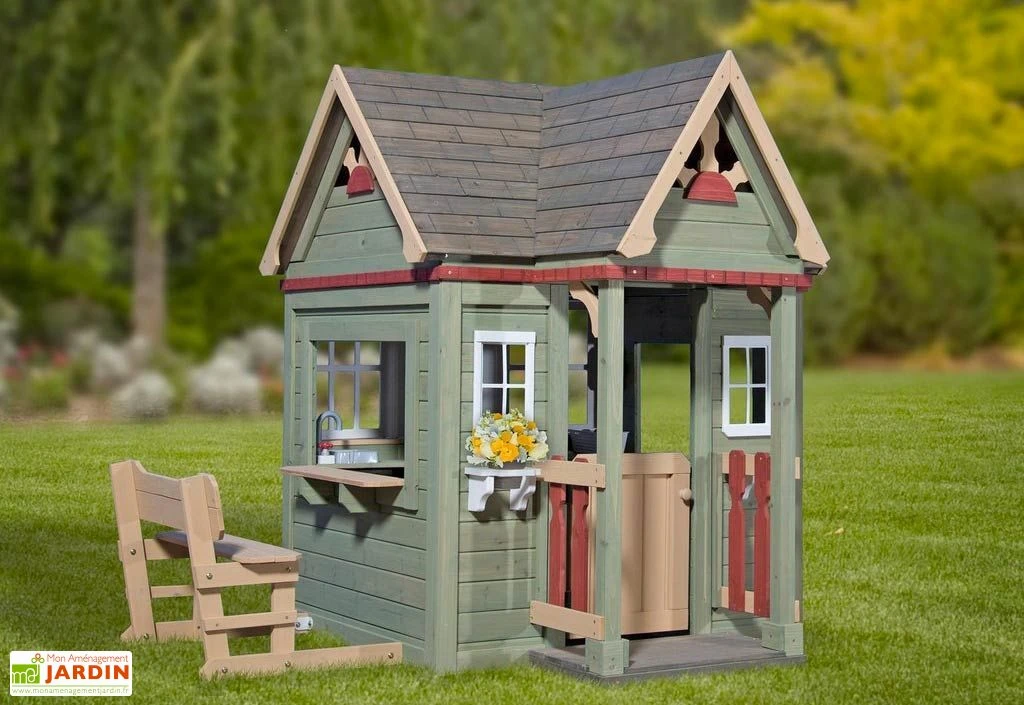 La cabane en bois est destinée à des enfants à partir de 2 ans et jusqu’à 10 ans. Elle est en cèdre tropical. Le cèdre tropical est un bois qui résiste naturellement à la moisissure et aux insectes et qui ne demande aucun entretien. Le bois n’a reçu aucun traitement chimique.