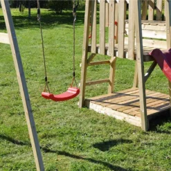 Cette cabane pour enfant est fabriquée en bois brut. Vous pouvez y appliquer un traitement fongicide et insecticide pour lui apporter une bonne protection contre les intempéries et l’humidité, mais également contre la moisissure et les insectes qui pourraient dégrader sa condition. Le bois utilisé pour sa conception est certifié FSC, ce qui signifie qu’il provient de forêts gérées dans le respect de l’environnement.