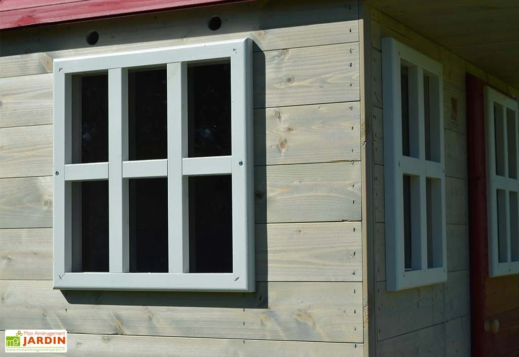 Avec des dimensions de 1,97 x 2,80 m (largeur x profondeur), cette cabane sur pilotis occupera une surface de 5,5 m² une fois installée dans votre jardin. Il vous faudra par ailleurs prévoir un périmètre d’environ 2 m tout autour de l’aire de jeux pour que vos enfants puissent s’amuser en toute sécurité. Livrée en kit, cette cabane en bois devra être montée par vos soins.