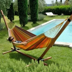 Hamac Sur Pieds En Bois Et Toile En Coton 140 X 200 Cm – Panama