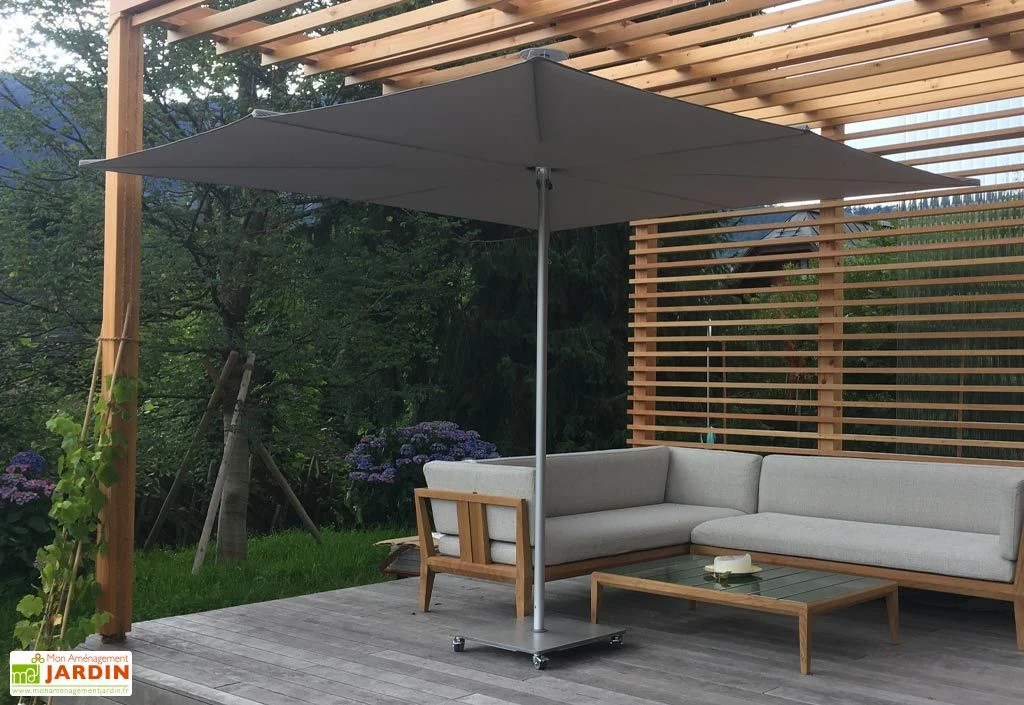 Le parasol est fabriqué en Belgique pour offrir une excellente qualité. Son design contemporain et minimaliste lui permet de s’intégrer facilement dans tous les jardins. La sobriété de son design est renforcé par les éléments suivants :