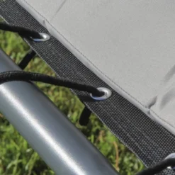 Il est équipé d’une toile en polyester gris. La toile possède une épaisseur de 180 gr/m² et elle résiste aux UV, gardant ainsi sa couleur plus longtemps.