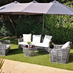 Le parasol Givex est un parasol rond de 3 m de diamètre disposant d’une belle toile grise qui s’intègre dans tous les jardins.