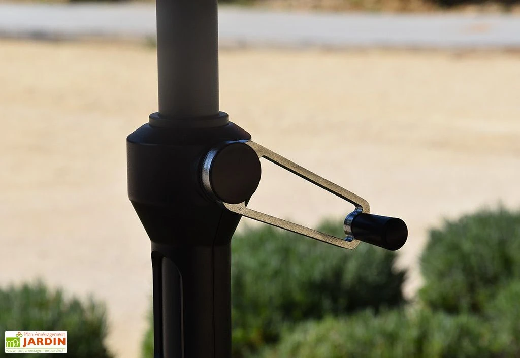 Enfin, l’ouverture et la fermeture du parasol s’effectuent grâce à une manivelle. Les manœuvres demandent ainsi moins d’efforts.