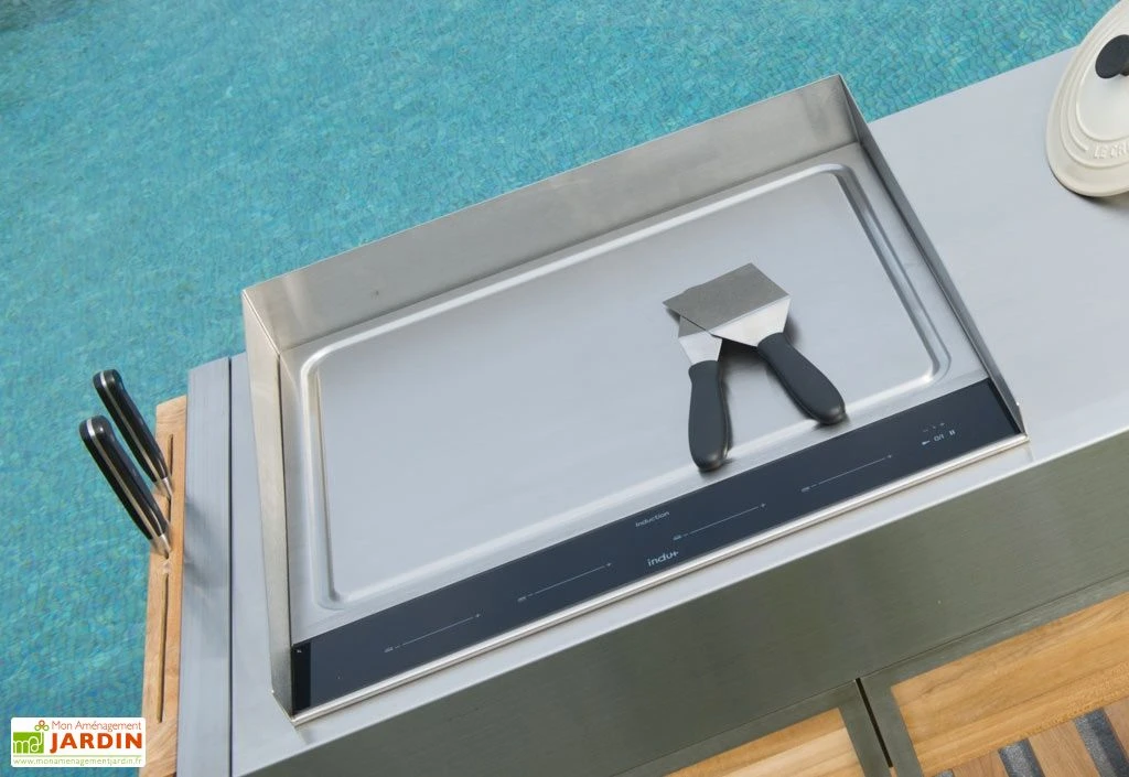 Votre paroi anti-éclaboussures de chez Indu+ est spécialement conçue pour éviter de salir votre cuisine extérieure Indu+ lorsque vous faites cuire vos aliments.