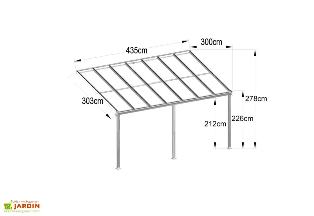 Cette pergola adossée Forest Style s’installe contre la façade de votre maison pour profiter d’un espace convivial et protégé sur la terrasse. Elle mesure 4,35 m de longueur, 3,03 m de profondeur, 2,78 m de hauteur côté mur et 2,26 m de hauteur à l’avant. Vous profitez ainsi d’une surface de 13,18 m².