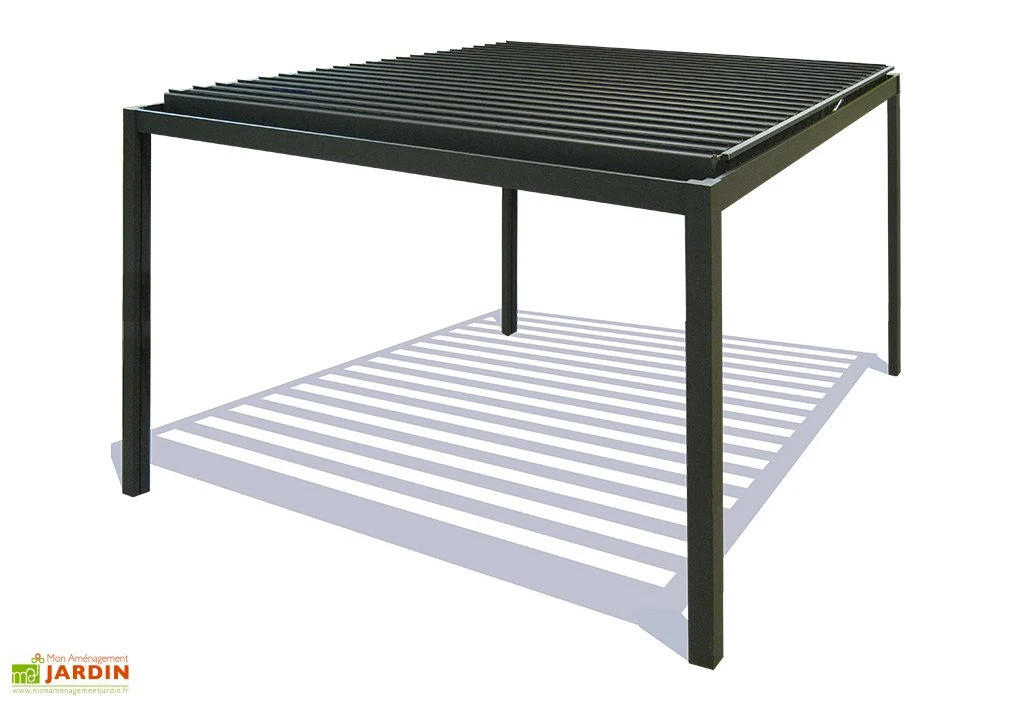 Toutes les versions possèdent une hauteur de 2,50 m, seul le nombre de lames variera selon la taille choisie. Entièrement conçue en aluminium, cette pergola bioclimatique autoportée témoignera d’une belle résistance face aux intempéries et à la rouille. L’aluminium est en effet insensible à la corrosion, même sans traitement préalable du métal. Toute la visserie est de plus en inox, ce qui signifie que l’ensemble de l’installation ne vous demandera aucun entretien particulier. Cette pergola est disponible dans deux coloris au choix : gris anthracite (RAL 7016) ou blanc laqué brillant (RAL 9010).