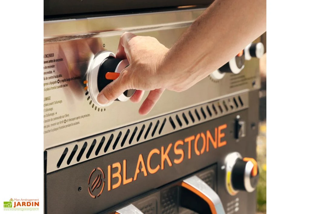 Montée sur chariot afin que vous puissiez l’installer rapidement et en toute simplicité dès que la météo le permet, cette plancha à gaz de chez Blackstone est idéale pour vos repas en extérieur, en famille ou entre amis ! Ce chariot est doté de quatre roulettes, dont deux avec freins, et compte également deux tablettes latérales sur lesquelles vous pourrez poser vos ingrédients et ustensiles de cuisine afin de les avoir à portée de main.