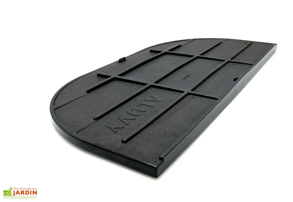 Cette plaque de cuisson de la marque Aluvy vous permettra de varier les plaisirs culinaires sur votre barbecue au gaz Lulu ou sur le barbecue Marcel. Elle est fabriquée en fonte émaillée, un matériau robuste et facile à nettoyer. La plancha mesure 56,10 cm de longueur sur 27,85 cm de largeur pour 0,6 cm d’épaisseur et pèse 8 kg.