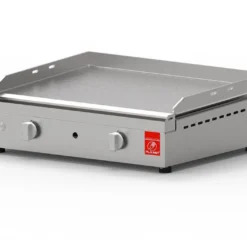 La plancha en inox fonctionne au gaz propane ou butane. Elle dispose de 2 brûleurs indépendants à bande large qui offrent une cuisson homogène sur toute la surface. Un allumage Piezzo électronique permet un démarrage simple et rapide du barbecue. La plaque dispose de renforts en croix anti-torsions.