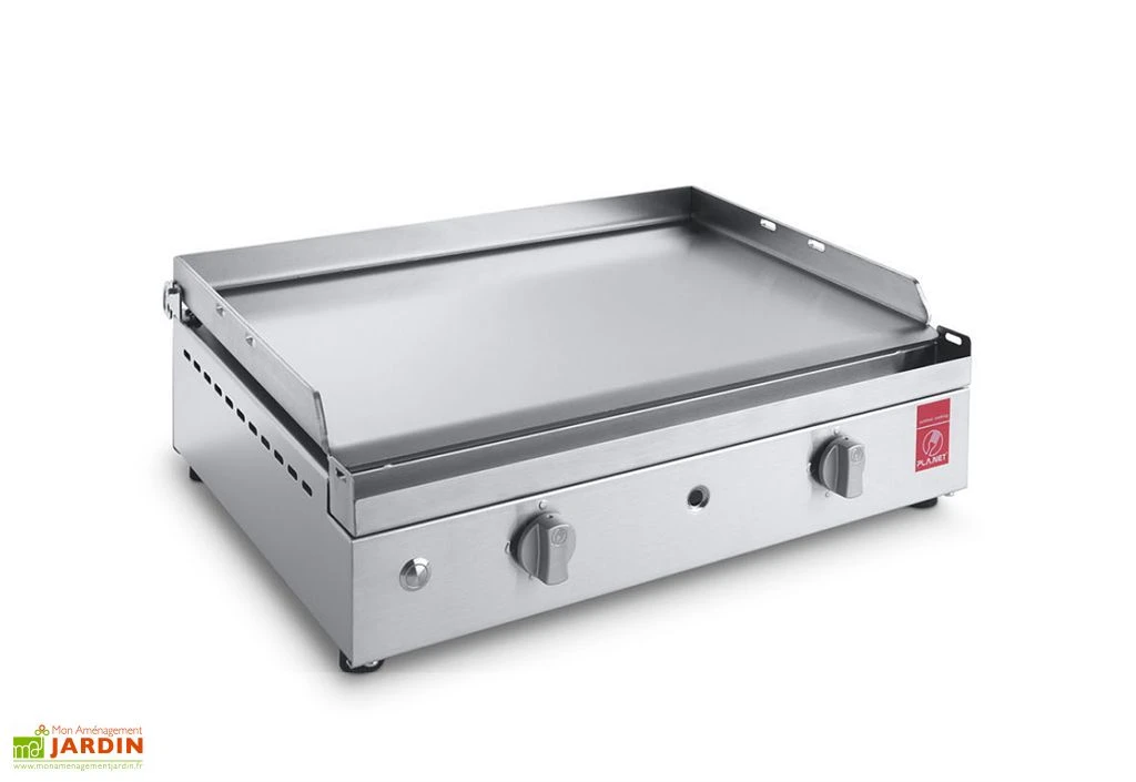 La plancha gaz de PlaNet est fabriquée en Italie et bénéficie d’une grande qualité grâce à sa surface de cuisson : une plaque en inox massif de 53 x 40 cm et de 5 mm d’épaisseur. Cette plaque ne craint pas la corrosion et il est possible de découper directement dessus. Il n’existe aucune migration entre la plaque et les aliments (aucune modification du goût des grillades).