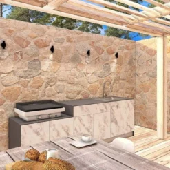 Cuisine Extérieure En Bois Et Aluminium 282 X 61 Cm Statuario