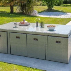 Salon De Jardin En Résine Tressée Encastrable Gris : 1 Table + 8 Fts