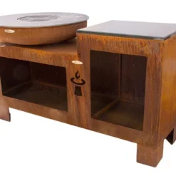 Braséro Barbecue En Acier Et Inox + Table Ø102 Cm H94 Cm – Vulcano L