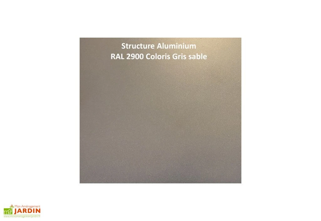 Ce store est intégré à un coffre en aluminium gris sablé (RAL 2900) qui se confond ainsi avec la structure de la pergola. Un guide store en aluminium à poser le long des poteaux est inclus. Le store gris anthracite est composé à 74% de PVC et à 26% de polyester et possède une épaisseur de 470 gr/m². Il se manipule aisément manuellement par enroulement. Il résistera à un vent léger.