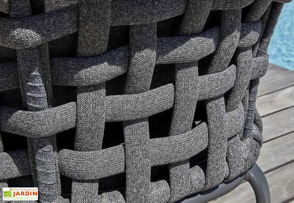 Les divers éléments qui constituent ce salon de jardin bas sont dotés d’une structure en aluminium, ce qui leur confère une grande résistance face à l’humidité et autres agressions extérieures. Ils ne rouilleront pas, et ce sans exiger de traitement ou d’entretien particulier. La légèreté de l’aluminium vous permettra de plus de déplacer facilement votre mobilier de jardin.