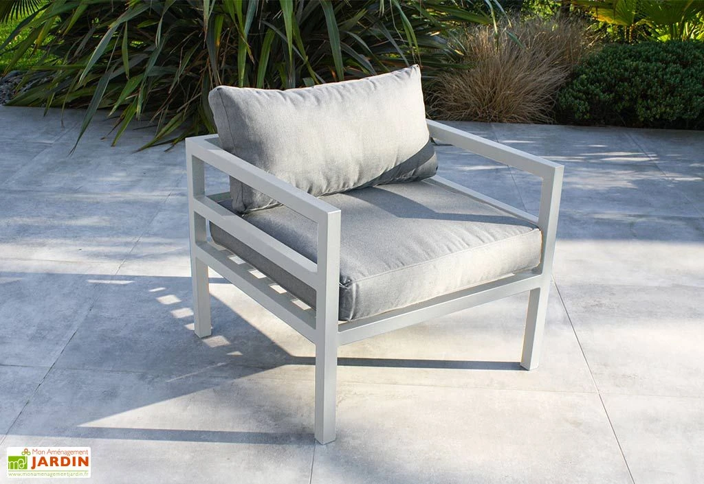 Les matériaux utilisés pour ce mobilier de jardin sont l’aluminium pour la structure, le verre pour le plateau de la table, ainsi que le polyester pour les housses des coussins. L’aluminium qui possède des propriétés inoxydables ne risque pas de rouiller et s’avère très léger s’il est nécessaire de déplacer le mobilier. Quant au verre utilisé pour le plateau, il permettra de laisser passer la lumière au travers de la table, apportant de la clarté à votre salon.