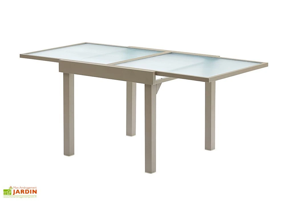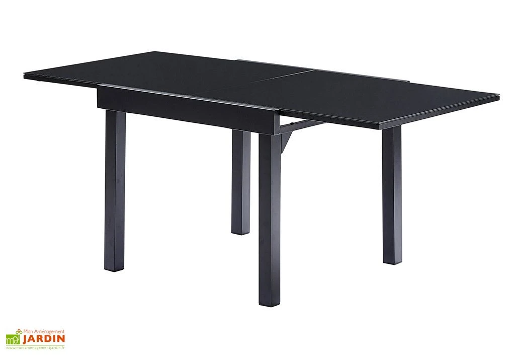 Votre salon de jardin Modulo de chez Wilsa comprend : une table en aluminium avec un plateau en verre trempé extensible. Les dimensions de la table sont : 90 x 90 x 72 cm (l,l,h) lorsqu’elle est fermée et fait 180 cm de long lorsque la rallonge coulissante est mise.