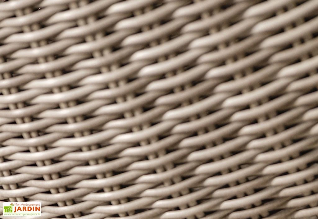 Le salon de jardin Isa en résine tressée demi ronde grise de chez DCB Garden aménage votre jardin avec sobriété et confort.