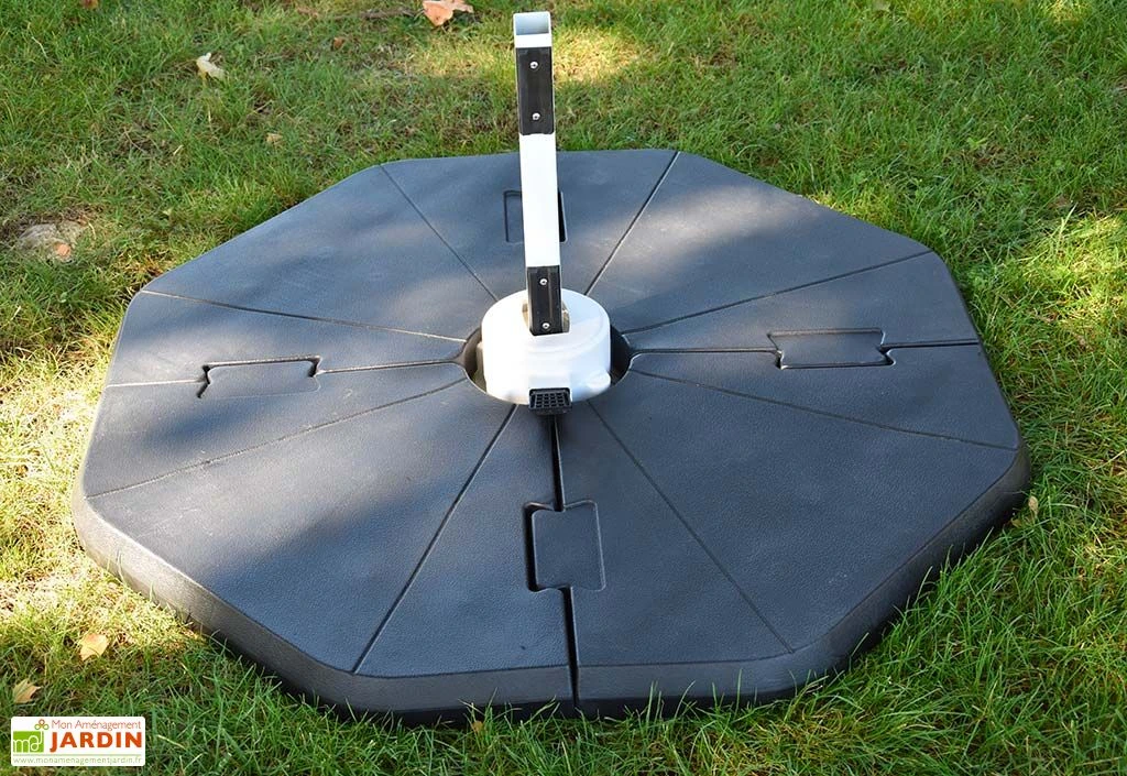 Ce socle pour parasol Givex est conçu en PVC, un matériau solide qui ne craint pas les intempéries. Il mesure 115 cm de large, pour 8 cm de haut, et est composé de quatre modules à emboîter autour du pied de votre parasol afin d’assurer sa bonne stabilité. Notez que ce socle devra être lesté avec du sable ou de l’eau.