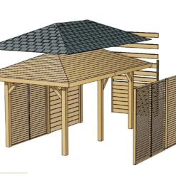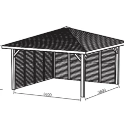 Ses dimensions sont de 1,20 x 1,20 x 1,61 m (l,l,h) et sa surface intérieure est de 1,44 m². Elle est équipée d’une porte de 0,53 x 0,89 m (l,h), d’une ouverture en façade et des deux ouvertures latérales.