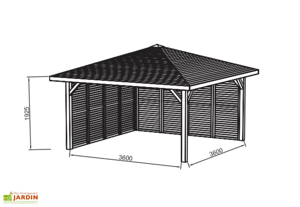 Ce pavillon en bois est doté d’une solide structure qui comprend quatre poteaux en bois massif de 12 x 12 cm de section renforcés au niveau de la toiture. Cette dernière, de forme pyramidale, est inclinée pour garantir le bon écoulement des eaux pluviales et est recouverte d’un revêtement en shingle qui assurera son étanchéité en cas d’averses. Vous pourrez donc profiter de votre pavillon de jardin, même en cas de pluie. Notez que le toit pourra supporter une charge de neige maximale de 75kg/m².