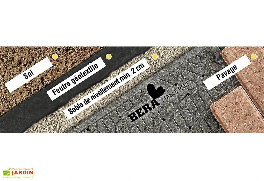 Ce stabilisateur en polypropylène vous est proposé par Bera. Il vous permet de préparer votre sol facilement en remplaçant 10 à 15 cm de fondation. Vous pouvez ainsi créer votre terrasse en dalles ou pierres naturelles, votre chemin en pavés ou pourquoi pas les abords de votre piscine sans gros travaux. C’est une solution pratique et économique qui vous évitera effort et main d’œuvre.