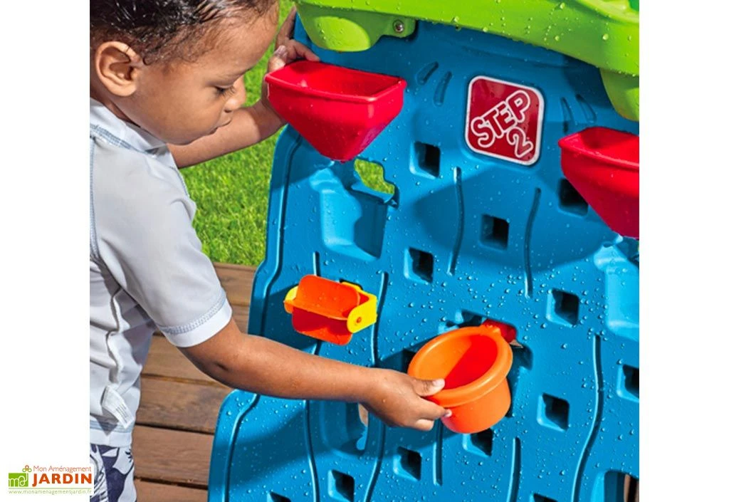 Le jeu d’eau Waterfall Discovery de chez Step2 prend la forme d’un petit mur en plastique sur lequel votre enfant pourra placer divers éléments (26 accessoires au total dont des tunnels, déviations, roues…) afin de créer un labyrinthe modifiable à souhait.