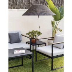 La suspension extérieure Saigon de chez Faro est dotée d’un abat-jour conçu en osier synthétique, un matériau robuste qui résistera sans peine aux conditions extérieures. Cet abat-jour revêt une couleur marron qui lui permettra de s’intégrer facilement dans la plupart des jardins, cours ou terrasses, et la structure du luminaire d’extérieur est fabriquée en aluminium, ce qui signifie qu’elle ne rouillera pas au fil du temps.