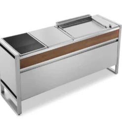 Parfaite pour des repas jusqu’à 6 convives, cette table de cuisson Oasi 183 de chez Pla.Net vous permettra de cuisiner en extérieur devant vos invités. Elle est équipée d’une plancha électrique, d’une table à induction, d’un plan de travail et d’un grand espace de rangement. L’ensemble mesure 183 cm sur 56 cm de profondeur pour 88 cm de haut.