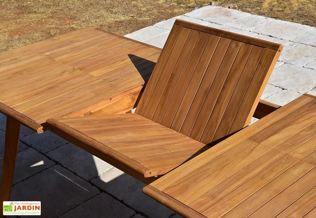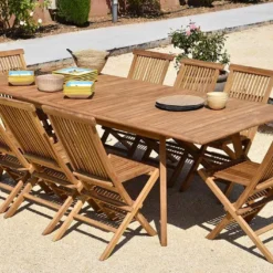 La table de jardin extensible Tahiti de chez Givex est entièrement fabriquée en teck massif, un bois naturellement résistant à l’humidité, aux champignons et aux intempéries. Le bois utilisé est même certifié 100% FSC, ce qui signifie qu’il provient de forêts gérées de manière durable et responsable.Â