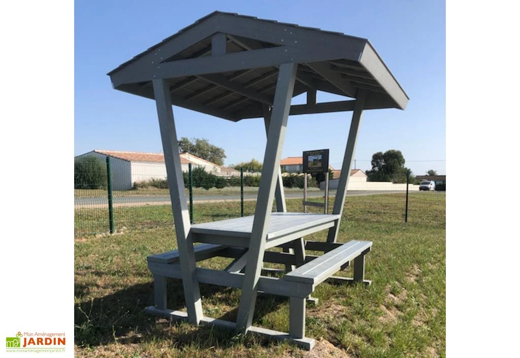 Cette grande table de pique-nique est idéale pour aménager un parc ou une aire de jeu, par exemple. Elle est en effet suffisamment grande pour accueillir confortablement six personnes et dispose d’un large toit à deux pans pensé pour vous protéger de la pluie en cas d’averse ! Parfaite pour les collectivités, cette table de pique-nique est de plus proposée dans trois coloris au choix (gris, marron et carbone) afin de s’intégrer facilement dans tous types d’extérieurs.