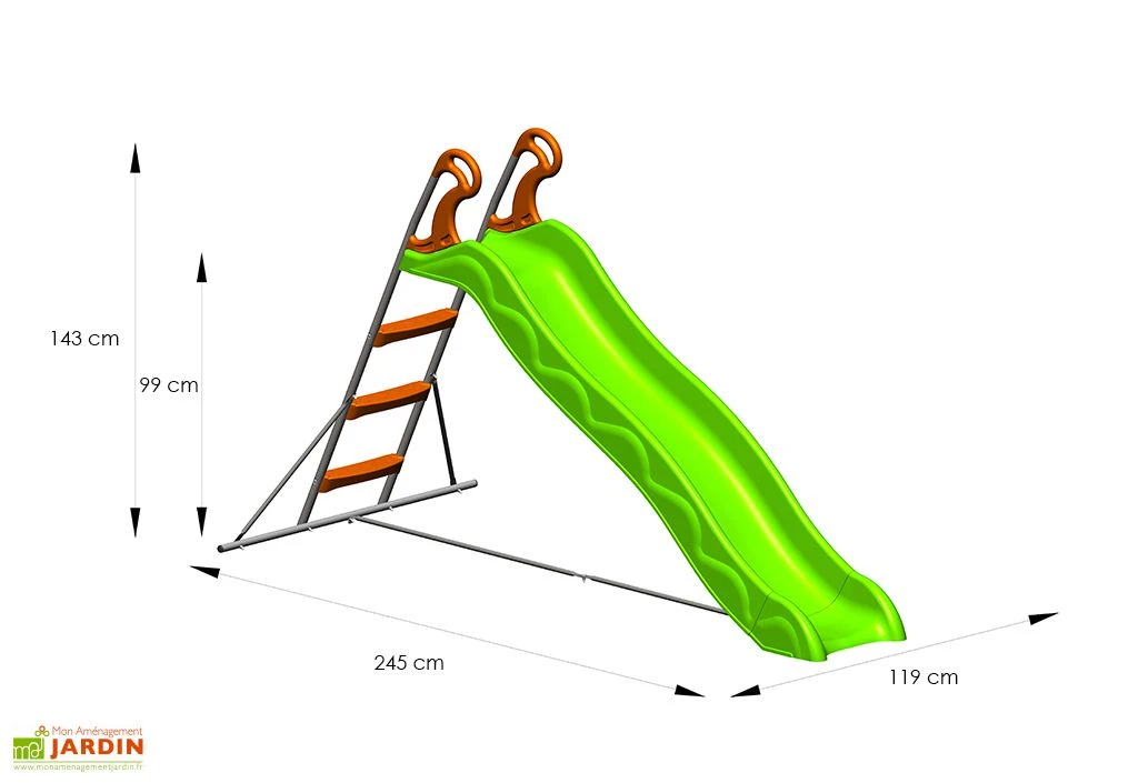 Le toboggan Danou de chez Trigano s’adresse aux jeunes enfants, entre 3 et 8 ans. Sa glissière en plastique de 2,15 m de long repose sur une structure métallique solide et parfaitement stable une fois ancrée dans le sol à l’aide des piquets fournis. Le design de cette glissière à vagues garantira à votre enfant de belles sensations et lui permettra de s’amuser en toute sécurité.