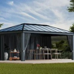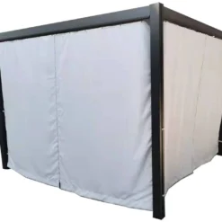 Rideaux En Polyester Gris Pour Pergola Bioclimatique Gaïa – Set De 4